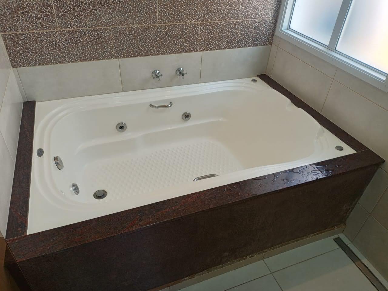 ✔️ 3 suítes com closet, sendo a suíte master com banheira dupla e vista para a piscina