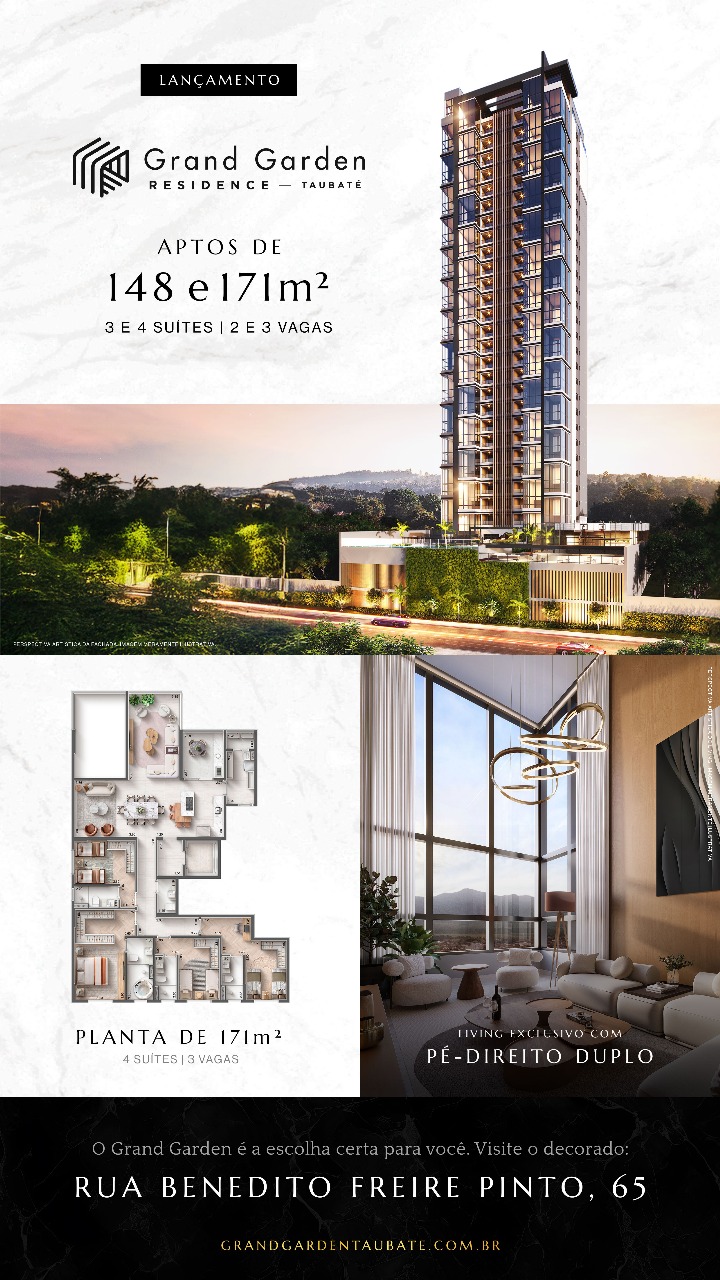 🏡 GRAND GARDEN TAUBATÉ – A ELEGÂNCIA E SOFISTICAÇÃO CHEGOU A CIDADE! 🏡 Chegou o empreendimento mais elegante da cidade, para quem valoriza conforto, estilo e exclusividade!